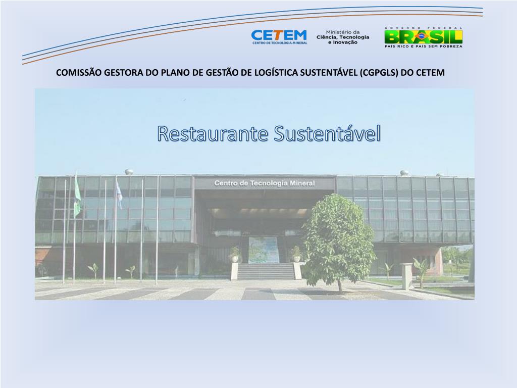 COMISSÃO GESTORA DO PLANO DE GESTÃO DE LOGÍSTICA SUSTENTÁVEL (CGPGLS) DO CETEM Restaurante Sustentável