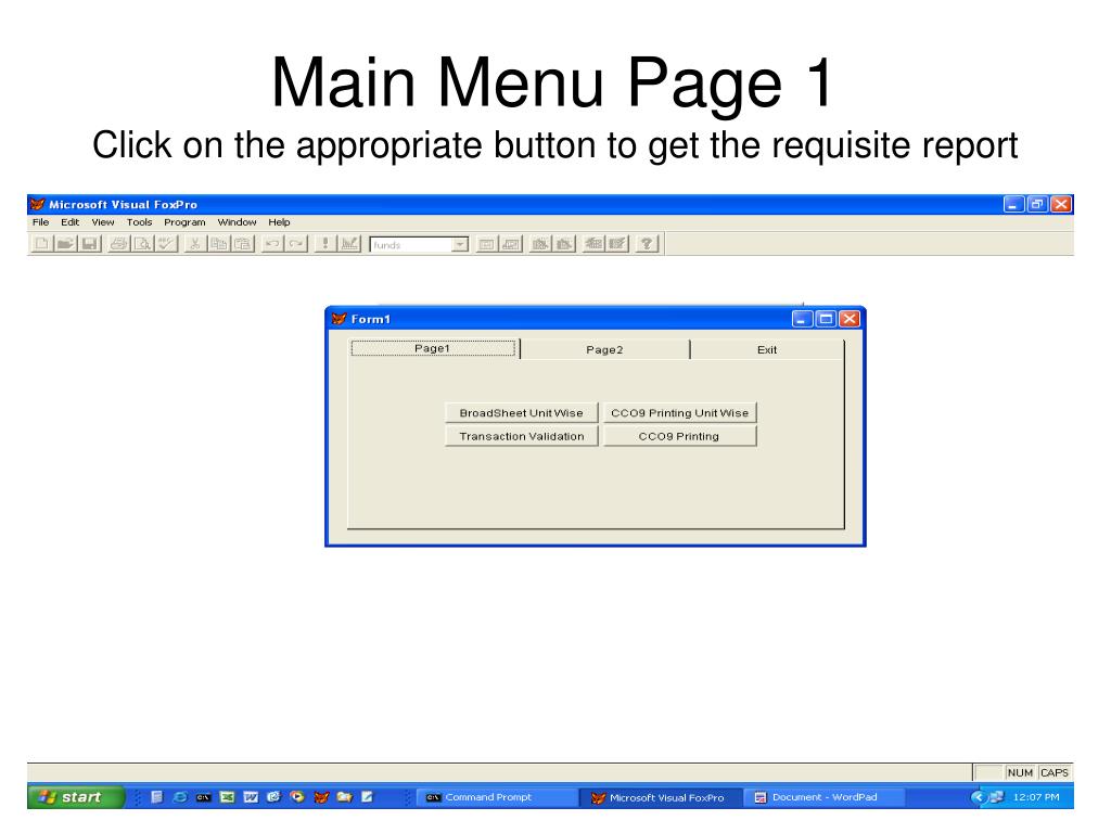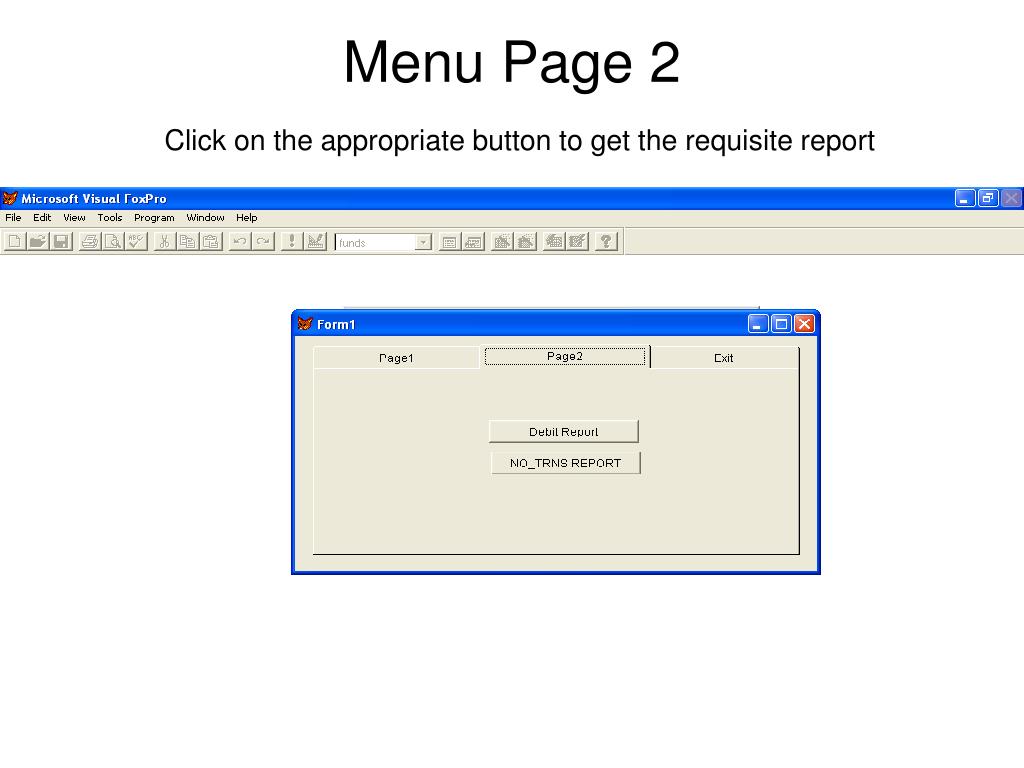 Main Menu Page 1Click on the appropriate button to get the requisite report