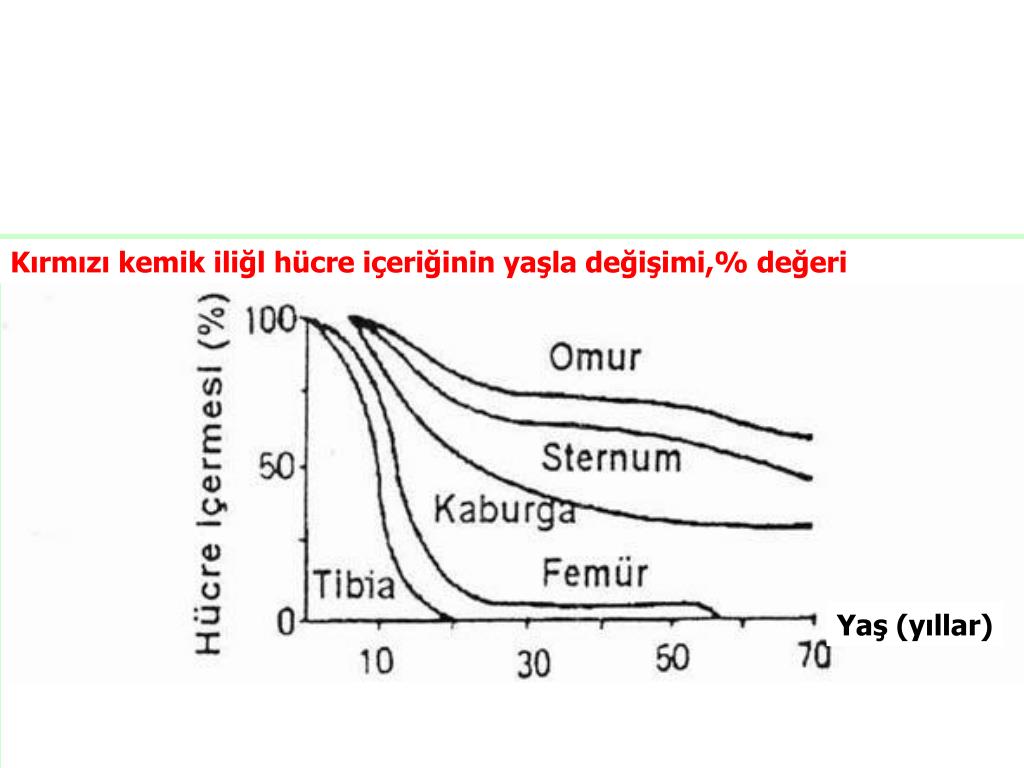 Kırmızı kemik iliğl hücre içeriğinin yaşla değişimi,% değeri Yaş (yıllar)