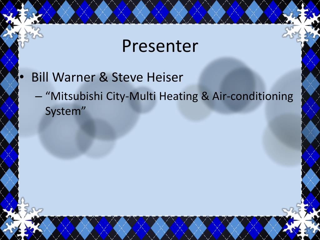 Presenter • Bill Warner & Steve Heiser • “Mitsubishi City-Multi Heating & Air-conditioning System”