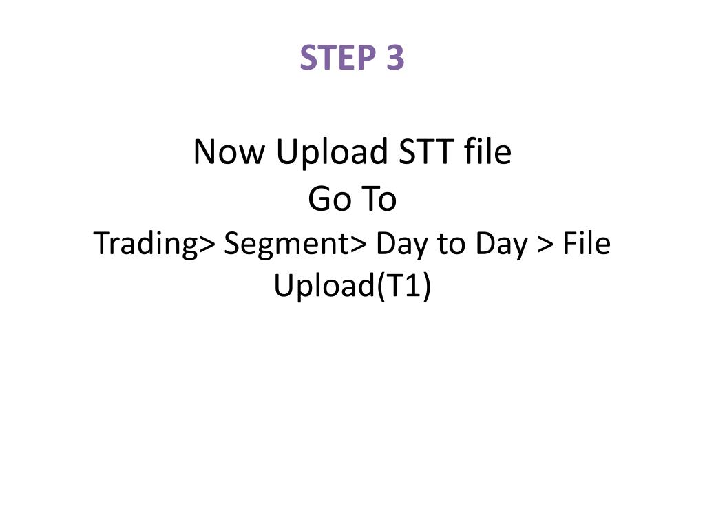 STEP 3Now Upload STT fileGo To Trading> Segment> Day to Day > File Upload(T1)
