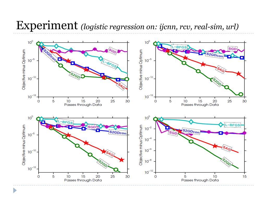 Experiment (logistic regression on: ijcnn, rcv, real-sim, url)