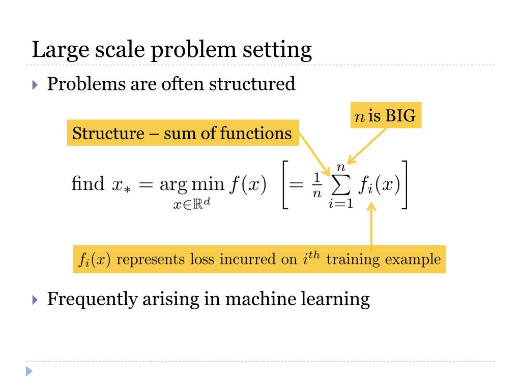Large scale problem setting • Problems are often structured • Frequently arising in machine learning is BIG Structure – sum of functions