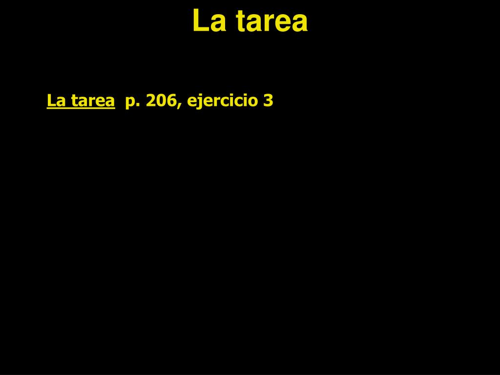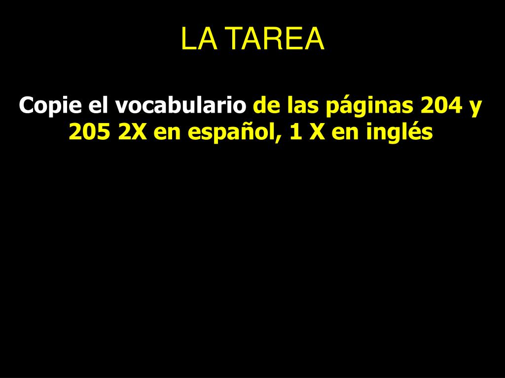 LA TAREA Copie el vocabulario de las páginas 204 y 205 2X en español, 1 X en inglés