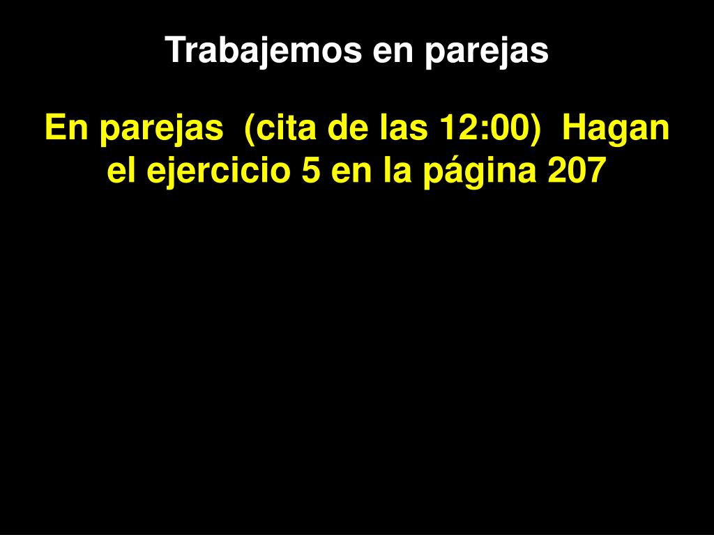 Trabajemos en parejas En parejas (cita de las 12:00) Hagan el ejercicio 5 en la página 207