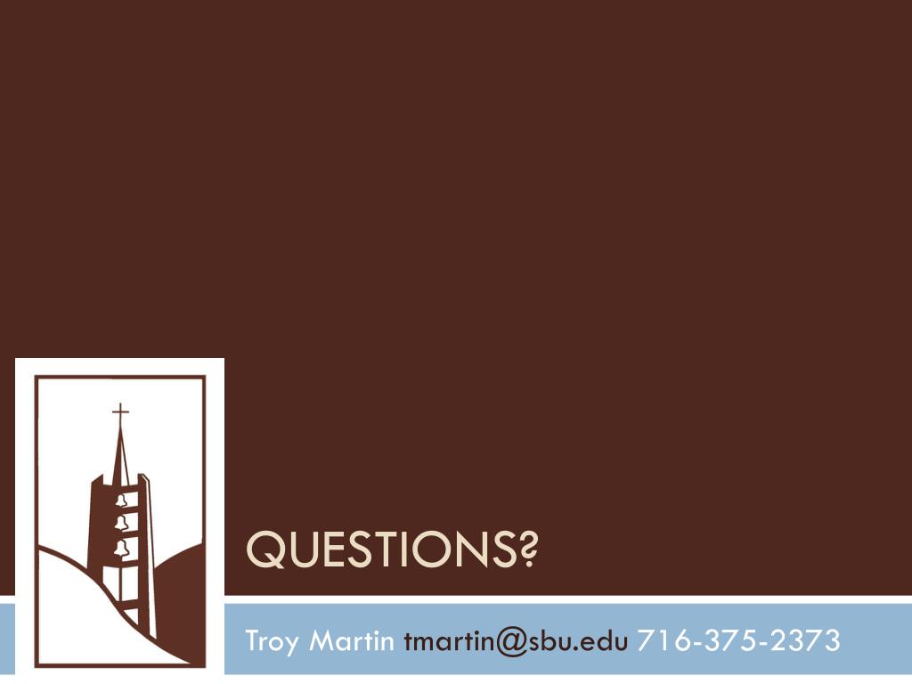 QUESTIONS? Troy Martin tmartin@sbu.edu 716-375-2373