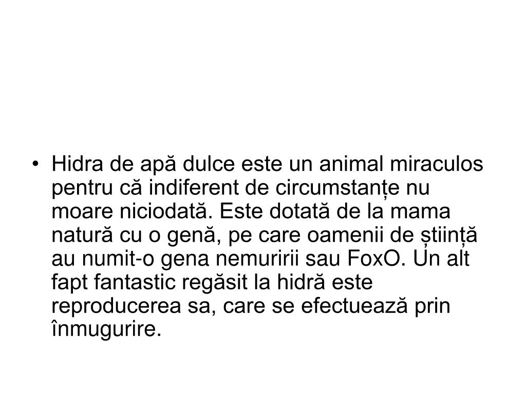 Hidra de apă dulce este un animal miraculos pentru că indiferent de circumstanțe nu moare niciodată. Este dotată de la mama natură cu o genă, pe care oamenii de știință au numit-o gena nemuririi sau FoxO. Un alt fapt fantastic regăsit la hidră este reproducerea sa, care se efectuează prin înmugurire.