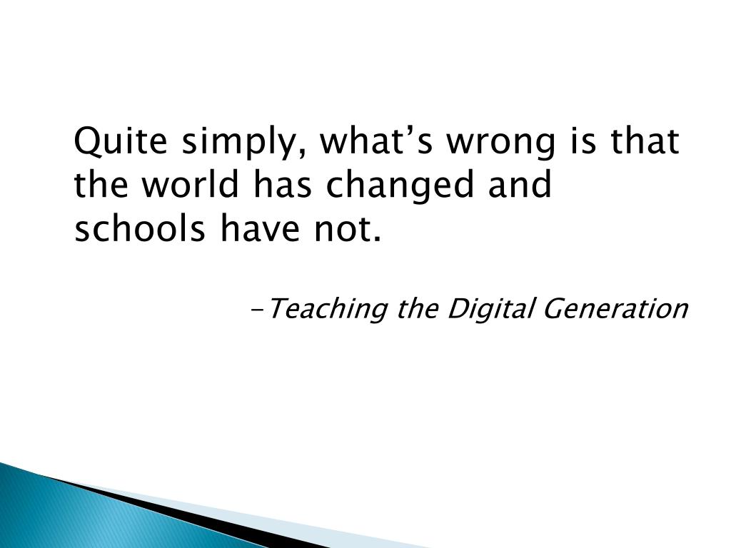 Quite simply, what’s wrong is that the world has changed and schools have not. -Teaching the Digital Generation