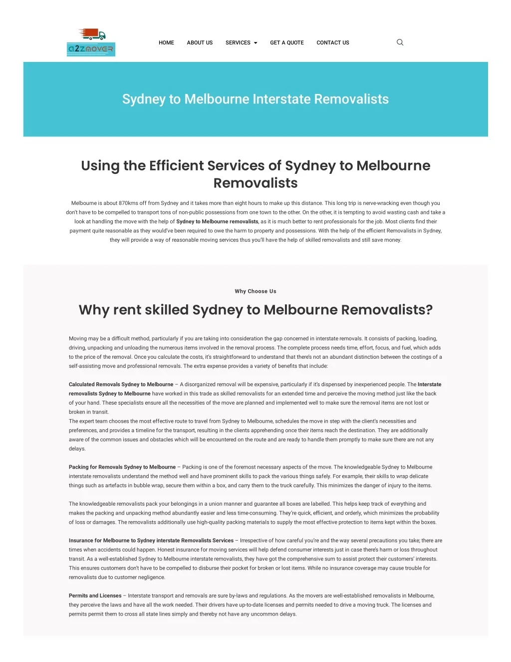 HOME ABOUT US SERVICES GET A QUOTE CONTACT US Sydney to Melbourne Interstate Removalists Using the Efficient Services of Sydney to Melbourne Removalists Melbourne is about 870kms off from Sydney and it takes more than eight hours to make up this distance. This long trip is nerve-wracking even though you don’t have to be compelled to transport tons of non-public possessions from one town to the other. On the other, it is tempting to avoid wasting cash and take a look at handling the move with the help of Sydney to Melbourne removalists, as it is much better to rent professionals for the job. Most clients ?nd their payment quite reasonable as they would’ve been required to owe the harm to property and possessions. With the help of the e?cient Removalists in Sydney, they will provide a way of reasonable moving services thus you’ll have the help of skilled removalists and still save money. Why Choose Us Why rent skilled Sydney to Melbourne Removalists? Moving may be a di?cult method, particularly if you are taking into consideration the gap concerned in interstate removals. It consists of packing, loading, driving, unpacking and unloading the numerous items involved in the removal process. The complete process needs time, effort, focus, and fuel, which adds to the price of the removal. Once you calculate the costs, it’s straightforward to understand that there’s not an abundant distinction between the costings of a self-assisting move and professional removals. The extra expense provides a variety of bene?ts that include: Calculated Removals Sydney to Melbourne – A disorganized removal will be expensive, particularly if it’s dispensed by inexperienced people. The Interstate removalists Sydney to Melbourne have worked in this trade as skilled removalists for an extended time and perceive the moving method just like the back of your hand. These specialists ensure all the necessities of the move are planned and implemented well to make sure the removal items are not lost or broken in transit. The expert team chooses the most effective route to travel from Sydney to Melbourne, schedules the move in step with the client’s necessities and preferences, and provides a timeline for the transport, resulting in the clients apprehending once their items reach the destination. They are additionally aware of the common issues and obstacles which will be encountered on the route and are ready to handle them promptly to make sure there are not any delays. Packing for Removals Sydney to Melbourne – Packing is one of the foremost necessary aspects of the move. The knowledgeable Sydney to Melbourne interstate removalists understand the method well and have prominent skills to pack the various things safely. For example, their skills to wrap delicate things such as artefacts in bubble wrap, secure them within a box, and carry them to the truck carefully. This minimizes the danger of injury to the items. The knowledgeable removalists pack your belongings in a union manner and guarantee all boxes are labelled. This helps keep track of everything and makes the packing and unpacking method abundantly easier and less time-consuming. They’re quick, e?cient, and orderly, which minimizes the probability of loss or damages. The removalists additionally use high-quality packing materials to supply the most effective protection to items kept within the boxes. Insurance for Melbourne to Sydney interstate Removalists Services – Irrespective of how careful you’re and the way several precautions you take; there are times when accidents could happen. Honest insurance for moving services will help defend consumer interests just in case there’s harm or loss throughout transit. As a well-established Sydney to Melbourne interstate removalists, they have got the comprehensive sum to assist protect their customers’ interests. This ensures customers don’t have to be compelled to disburse their pocket for broken or lost items. While no insurance coverage may cause trouble for removalists due to customer negligence. Permits and Licenses – Interstate transport and removals are sure by-laws and regulations. As the movers are well-established removalists in Melbourne, they perceive the laws and have all the work needed. Their drivers have up-to-date licenses and permits needed to drive a moving truck. The licenses and permits permit them to cross all state lines simply and thereby not have any uncommon delays.