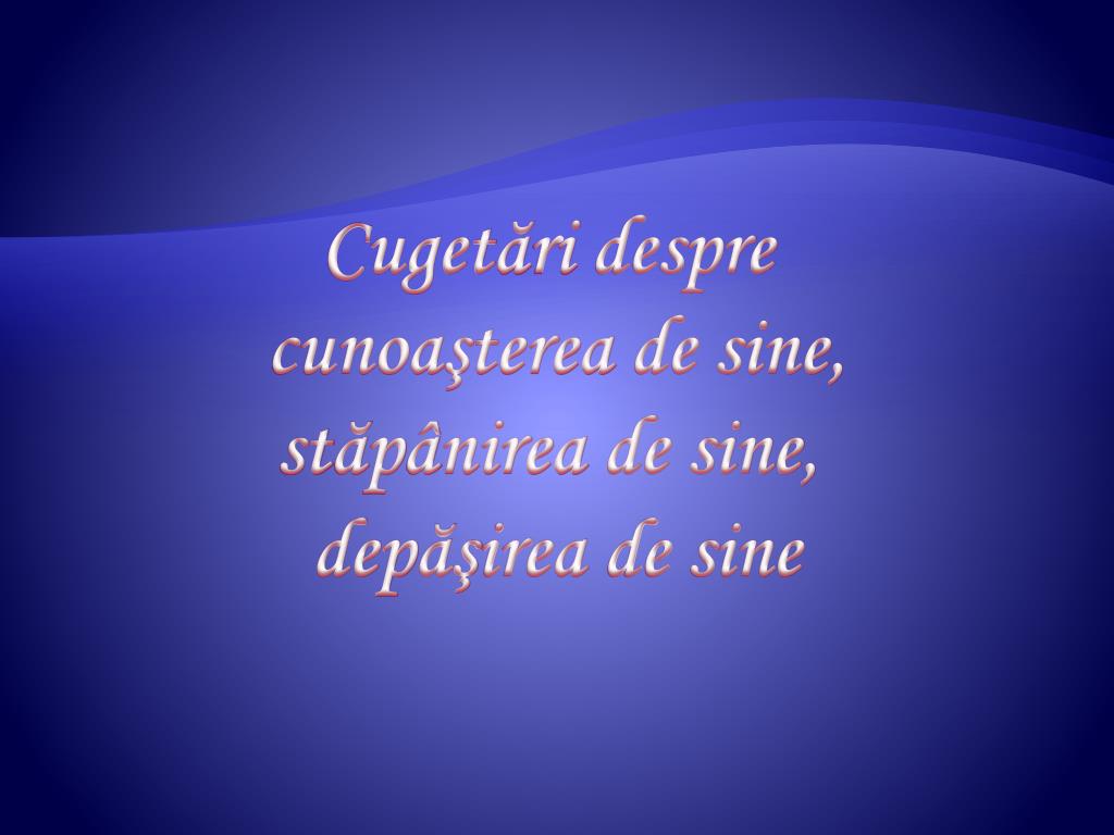 Cugetăridespre cunoaşterea de sine, stăpânireade sine, depăşireade sine