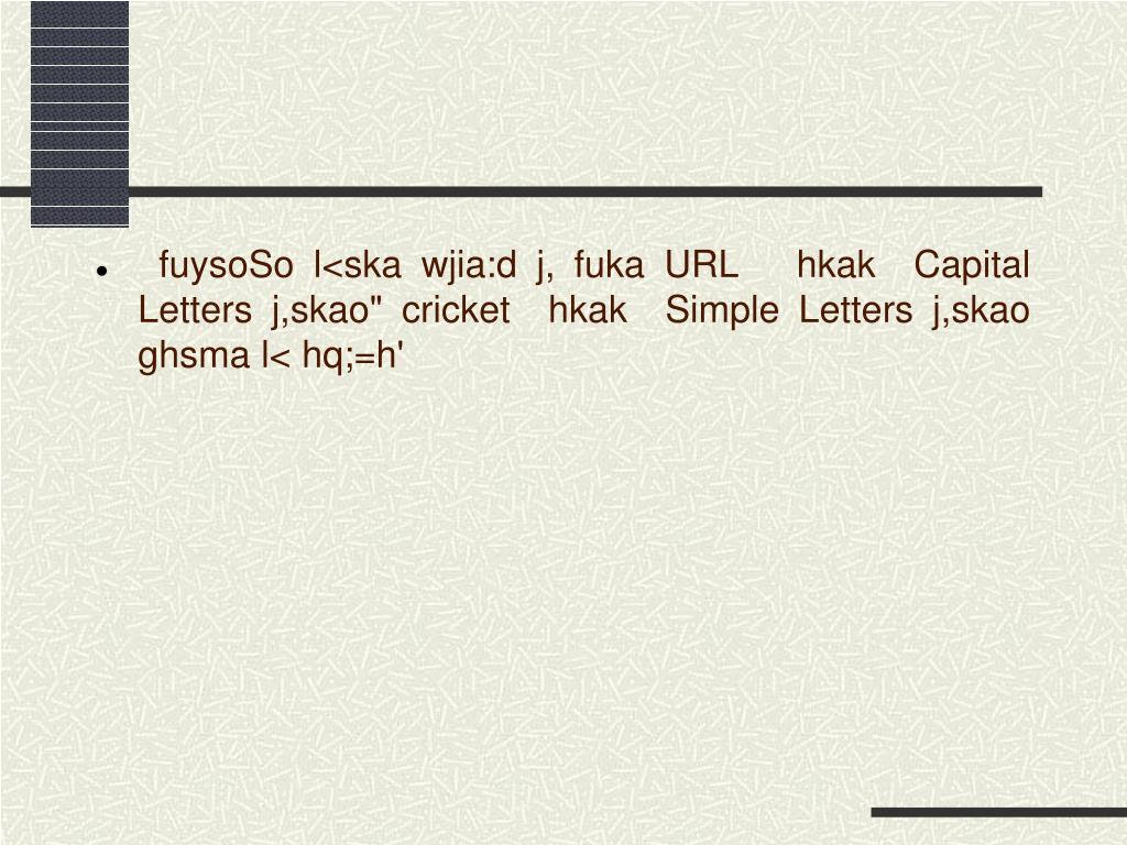 fuysoSo l<ska wjia:d j, fuka URL hkak Capital Letters j,skao" cricket hkak Simple Letters j,skao ghsma l< hq;=h'