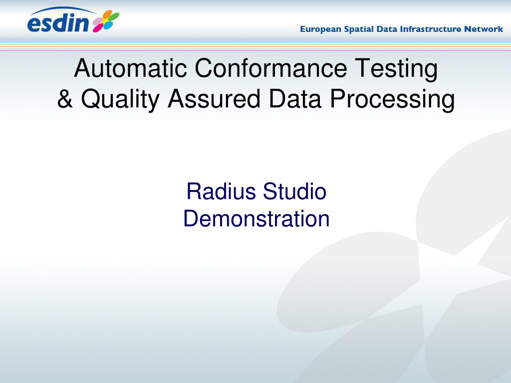 Automatic Conformance Testing& Quality Assured Data Processing Radius Studio Demonstration