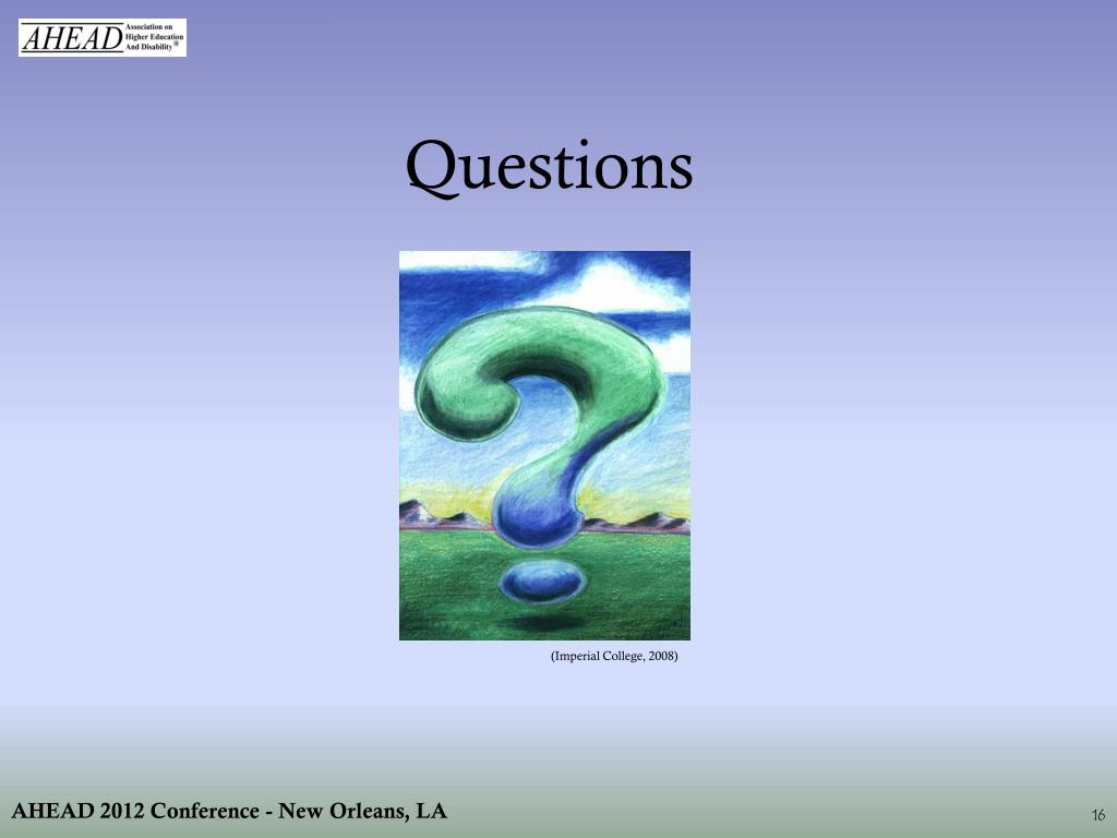Questions (Imperial College, 2008) AHEAD 2012 Conference - New Orleans, LA