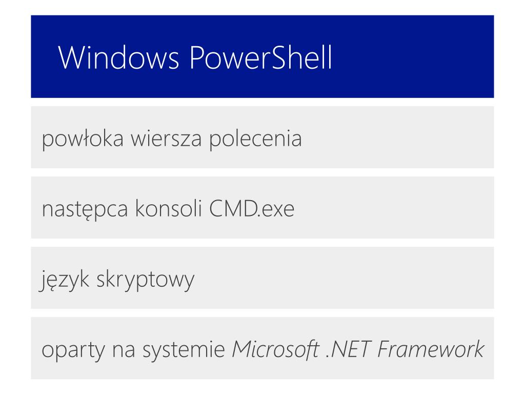 Windows PowerShell powłoka wiersza polecenia następca konsoli CMD.exe język skryptowy oparty na systemie Microsoft .NET Framework
