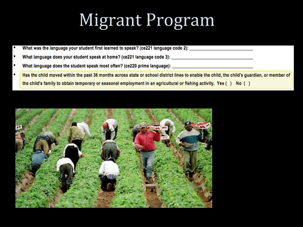 Some Requirements of NCLB... • Administration the Home Language Survey to all students • Identification of all students whose native language is not English • Initial assessment English language proficiency (30 days, 2 weeks) • Annual assessment of English language proficiency