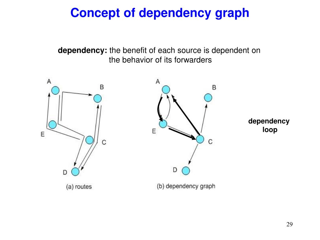 Concept of dependency graph dependency loop dependency: the benefit of each source is dependent on the behavior of its forwarders