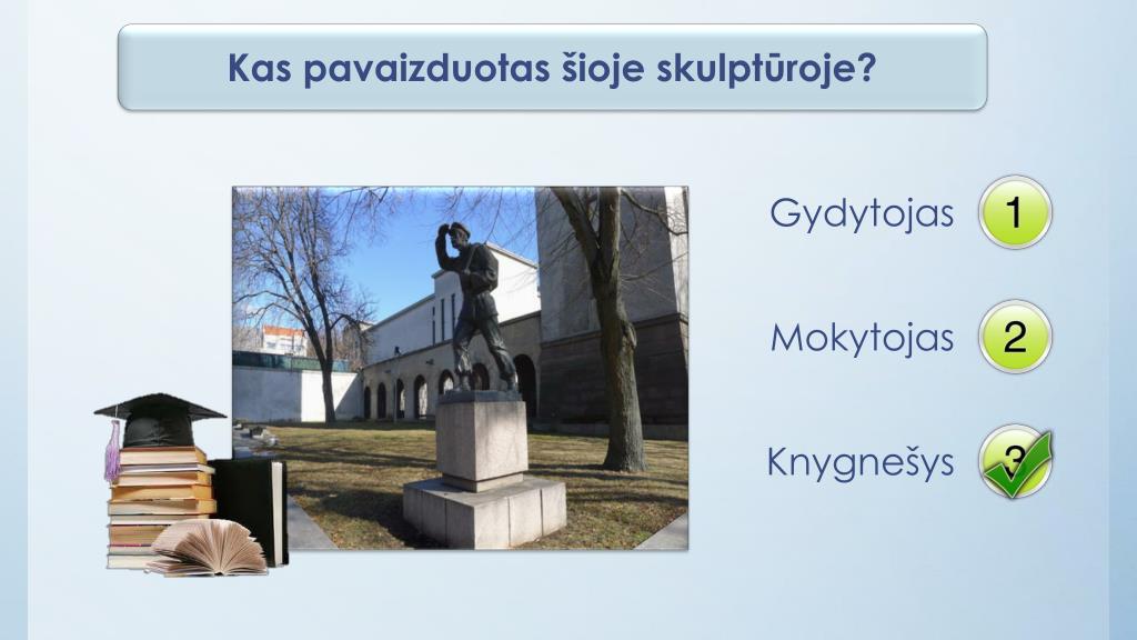 Kas pavaizduotas šioje skulptūroje? Gydytojas Mokytojas Knygnešys