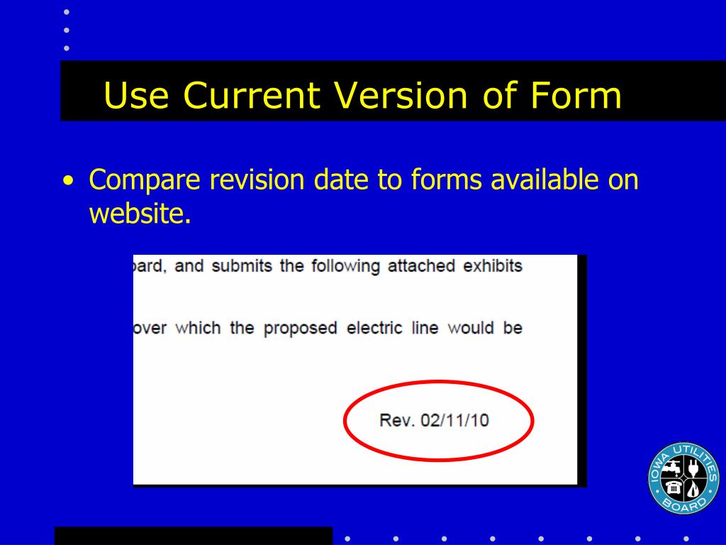 Draft Petition Forms • The draft petition forms are being provided for your comments. These forms are being proposed to replace the forms currently in use. This is an informal process and official filings are not required. Any comments that you may have should be emailed to Don Stursma (Don.Stursma@iub.state.ia.us), Manager Safety & Engineering, prior to March 12, 2010.