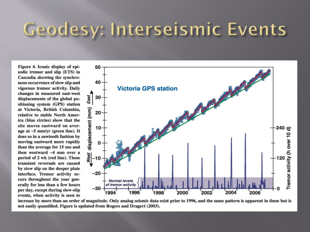 Geodesy • Relaxation processes? • Distributed viscous shear and localized aseismic slip can produce same pattern of post-seismic surface deformation for a 2D, infinite length, strike slip EQ • Distribution of deep relaxation not as ambiguous when considering 3D post-seismic deformation w/ finite length ruptures