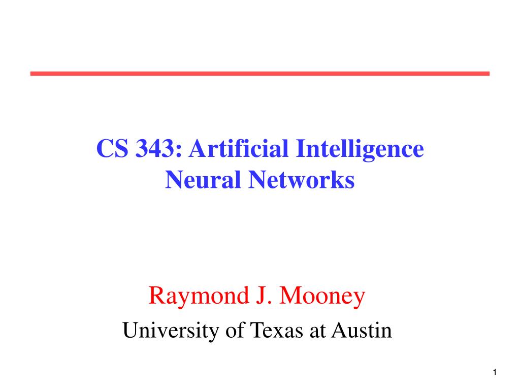 CS 343: Artificial Intelligence Neural Networks. Raymond J. Mooney University of Texas at Austin. Neural Networks. Analogy to biological neural systems, the most robust learning systems we know. Attempt to understand natural biological systems through computational modeling.
