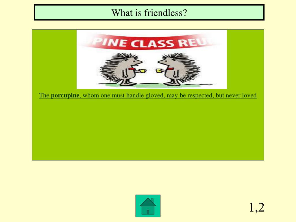 1,2 What is friendless? The porcupine, whom one must handle gloved, may be respected, but never loved