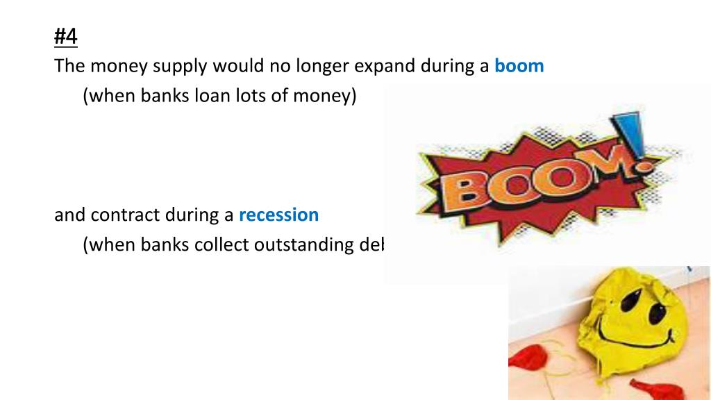 #4 The money supply would no longer expand during a boom (when banks loan lots of money) and contract during a recession (when banks collect outstanding debts).