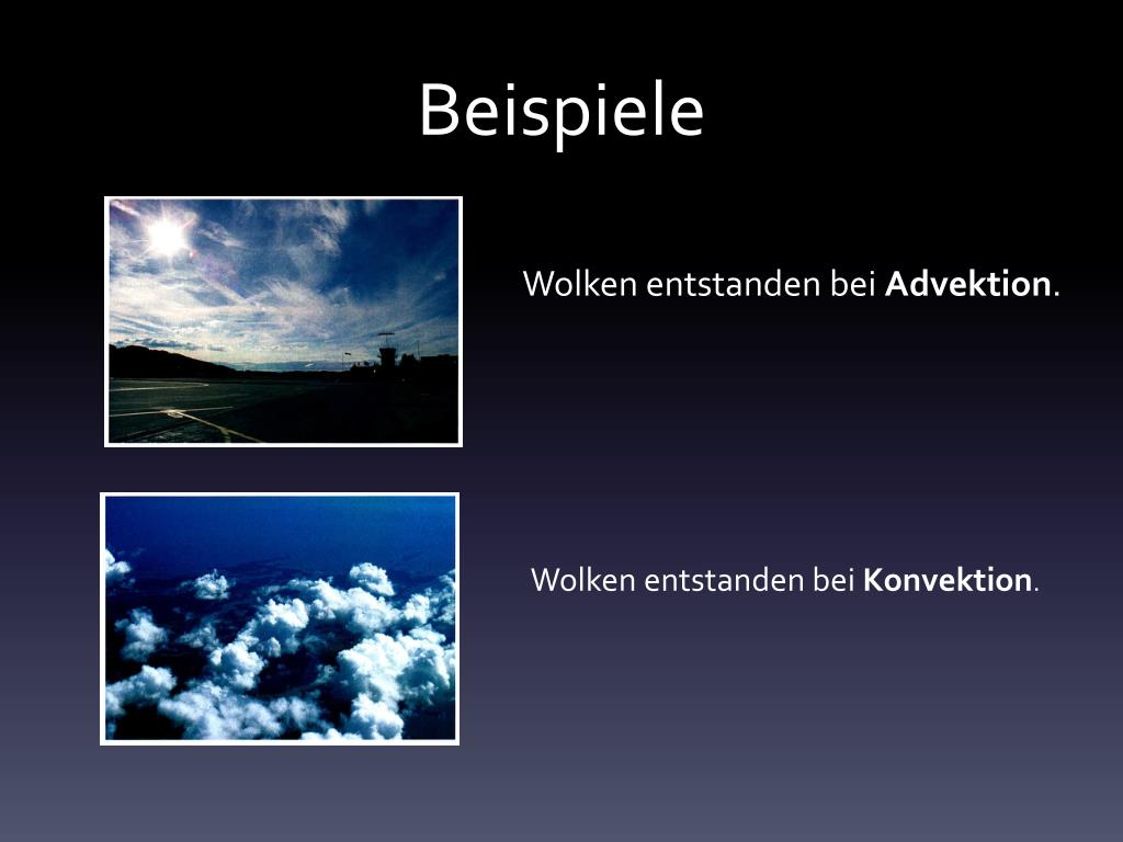 Beispiele Wolken entstanden bei Advektion. Wolken entstanden bei Konvektion.
