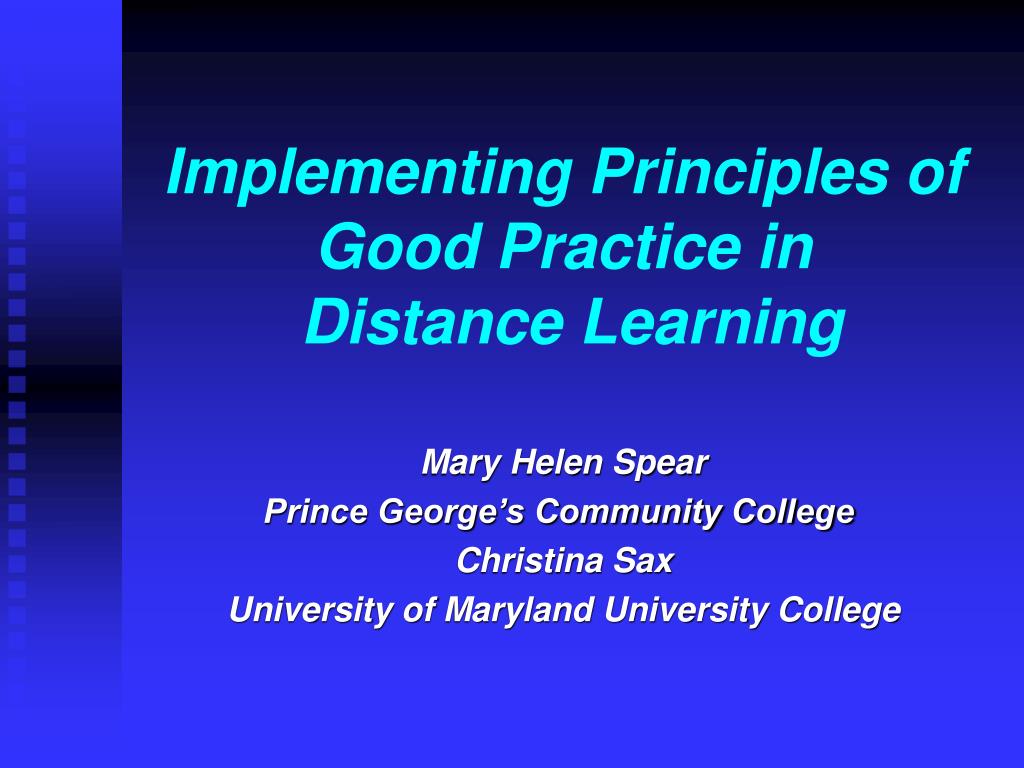 Implementing Principles of Good Practice in Distance Learning Mary Helen Spear Prince George’s Community College Christina Sax University of Maryland University College
