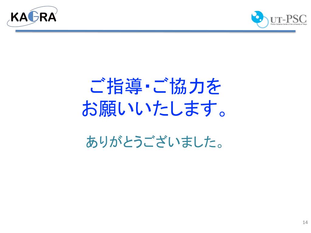 問題点 • 現状製造者がCSIに限られている。大きさの制限がある。吸収係数の値も不十分。 • 今後 • 大きな C-axis 鏡の実現 (d:25cm x t:15cm) :中国との連携。 • 品質の改善:吸収の原因が不明。 • 大型結晶による鏡面研磨の性能評価:Zygoがテスト研磨を行っている。 • 物性的な側面から掘り下げる必要があるかもしれない。