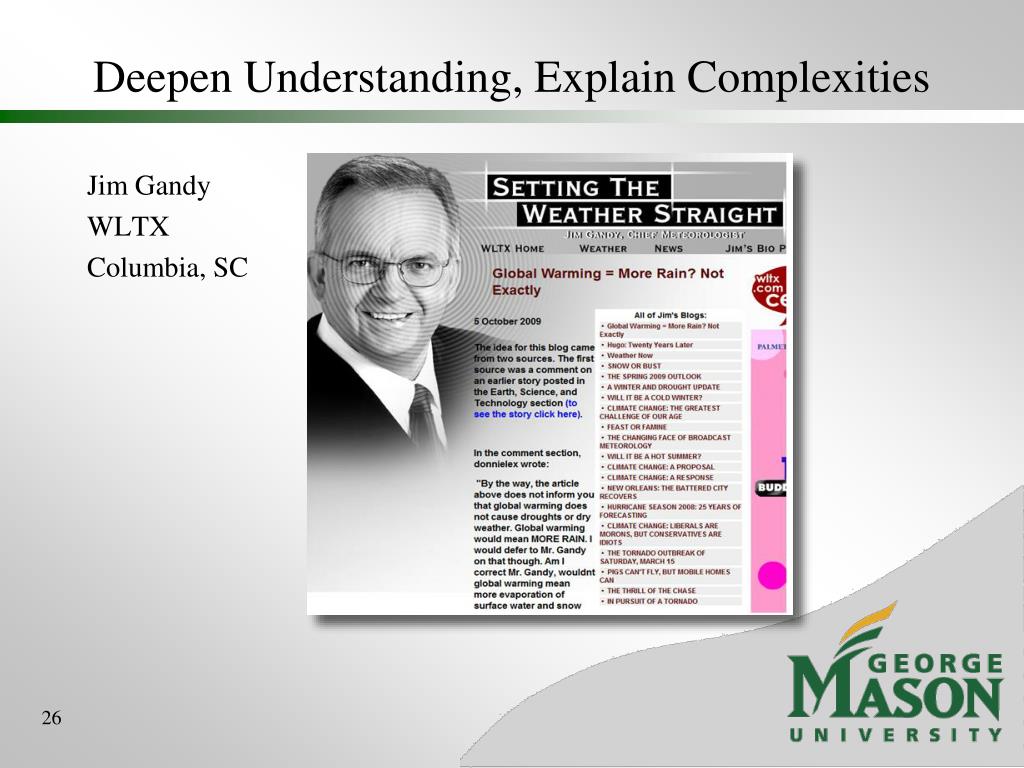 Deepen Understanding, Explain Complexities Jim Gandy WLTX Columbia, SC