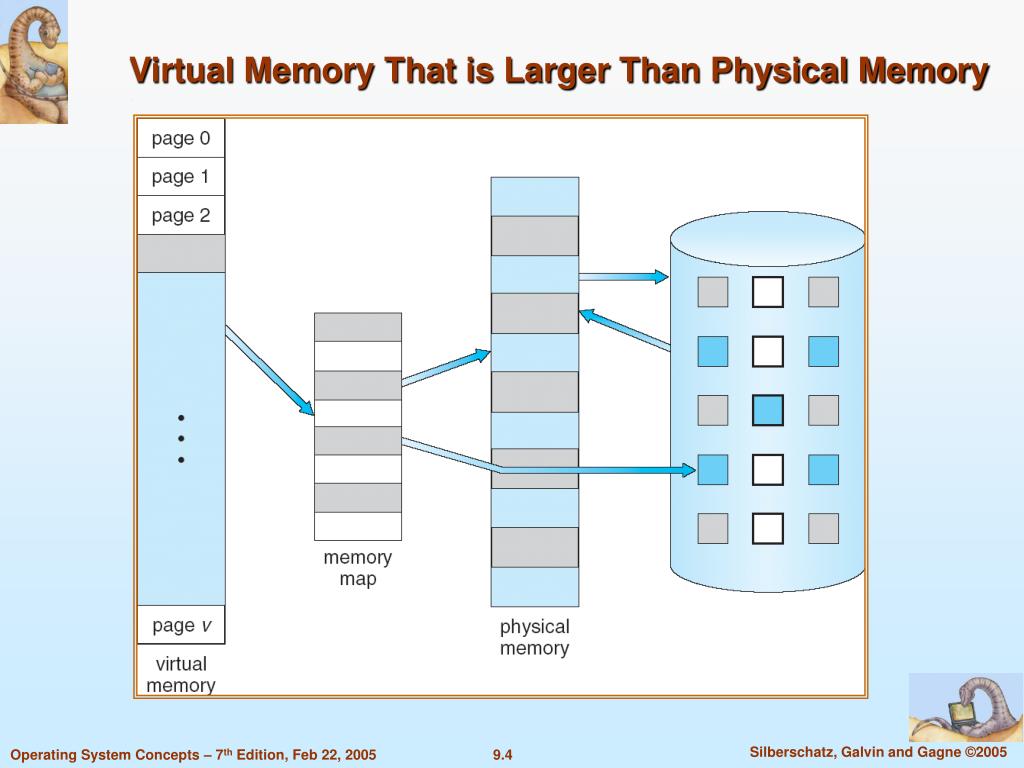 Why VM? • Only part of the program needs to be in memory for execution • Logical address space can therefore be much larger than physical address space • Allows for more efficient process creation