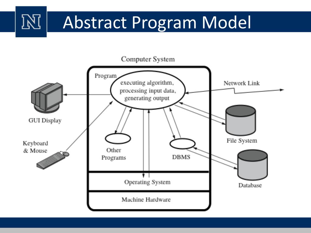 Operating System Interaction • programs execute on systems under the control of an operating system • mediates and shares access to resources • constructs execution environment • includes environment variables and arguments • systems have a concept of multiple users • resources are owned by a user and have permissions granting access with various rights to different categories of users • programs need access to various resources, • however excessive levels of access are dangerous • concerns when multiple programs access shared resources such as a common file