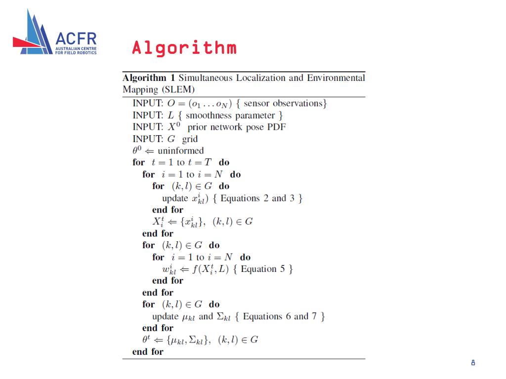 Conclusions • EM framework for simultaneous localisation and environmental mapping (i.e. continuous field) • Interesting idea, but implementation does not fully take advantage of continuous field