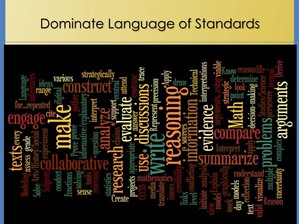Dominate Language of StandardsThe Language of Common Core...HO.1www.wordle.net 7