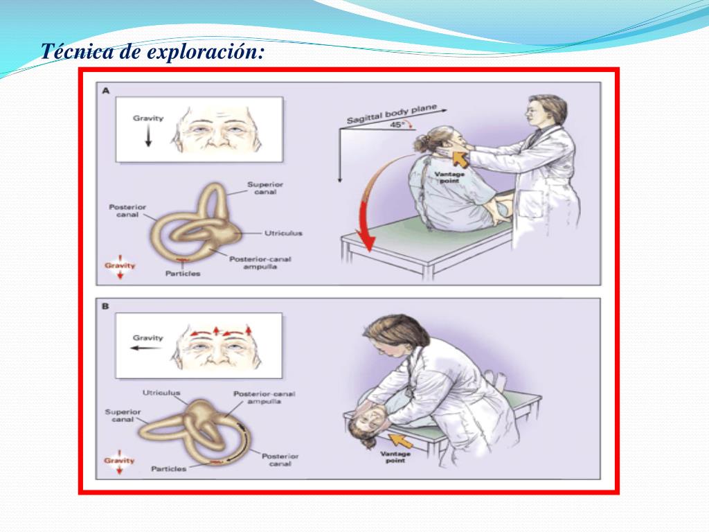 NISTAGMUS ESPONTANEO Es un movimiento ocular rítmico, compuesto por dos fases, una lenta, en la que los ojos se desplazan en forma gradual y progresiva y la fase rápida. Para su evaluación se requiere que el paciente mire un blanco óptico, habitualmente el dedo del explorador, a una distancia conveniente para que puede fijar cómodamente, que se lleva a distintas posiciones, del centro a 30 a 40 grados a la derecha, izquierda, hacia arriba y hacia abajo. Corvera, “Neurootologia clínica”, Ed. Salvat, 2da edición, México 1990. Brunas, Marelli, “Sistema vestibular y trastornos oculomotores”, Ed. Ateneo, 2da edición, Argentina 1985. Bartual, Fernández, “El sistema vestibular y sus alteraciones”, Ed. Biblio stm, España 1999.