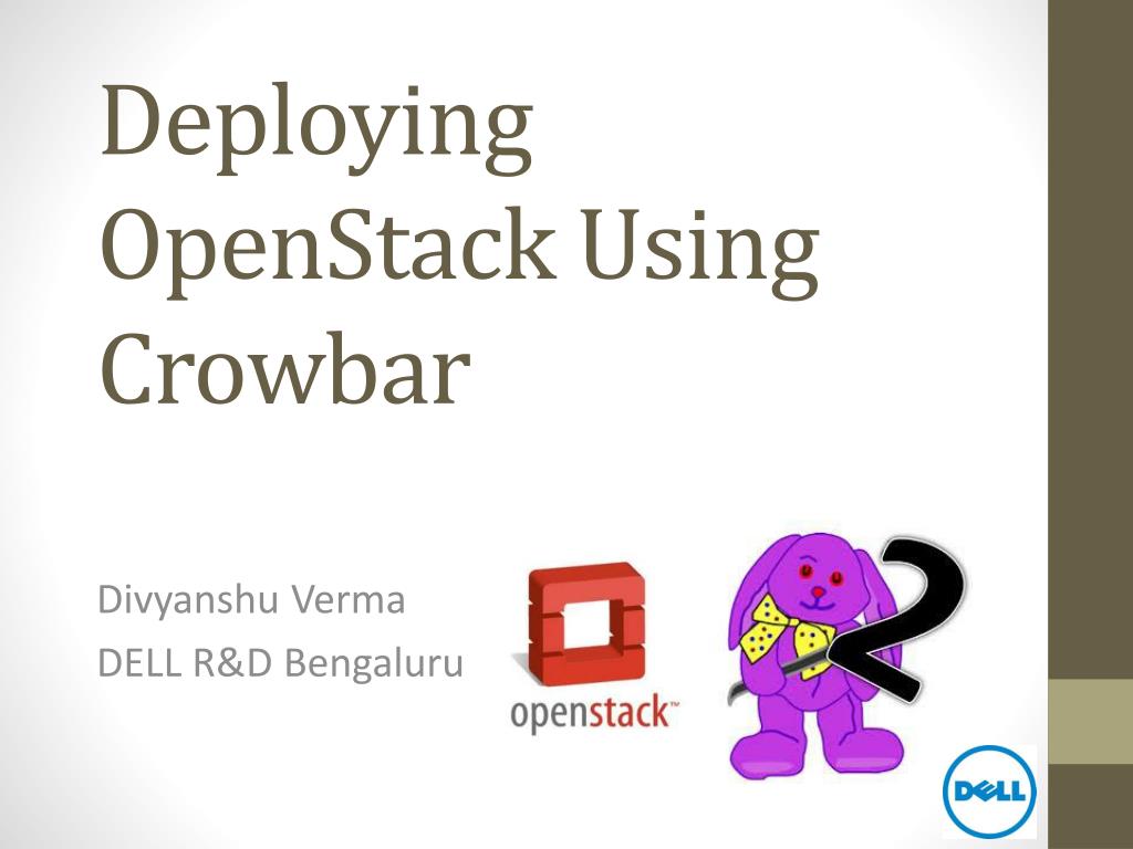 Deploying OpenStack Using Crowbar. Divyanshu Verma DELL R&D Bengaluru. Agenda. Introduction to OpenStack OpenStack Logical Architecture OpenStack deployment – Challenges Introduction to Crowbar Deploying OpenStack using Crowbar. OpenStack.