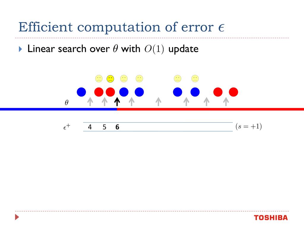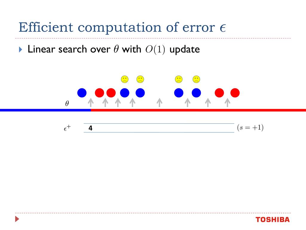 Efficient computation of error ² • Recall • Consider decision stump with sign • Trivially, decision stump training set error