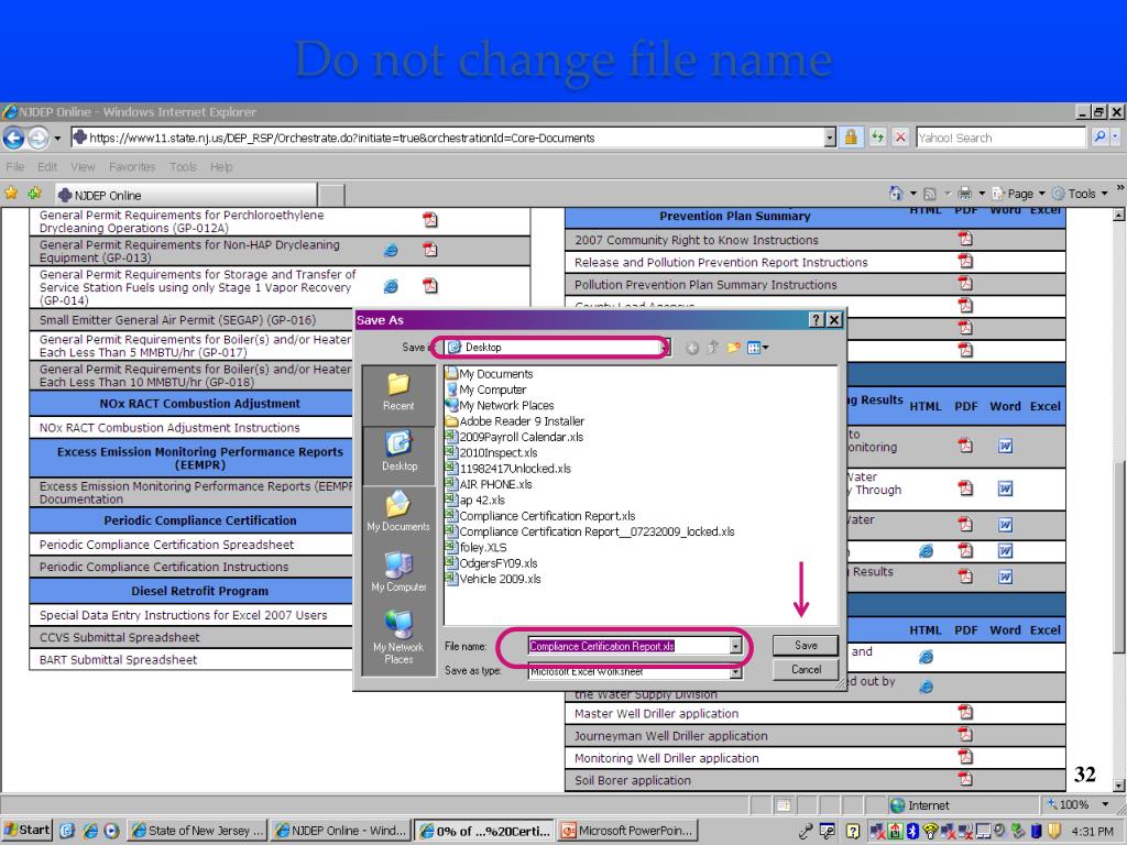 8. Annual Compliance Certification spreadsheet must be downloaded from the NJDEP Portal.