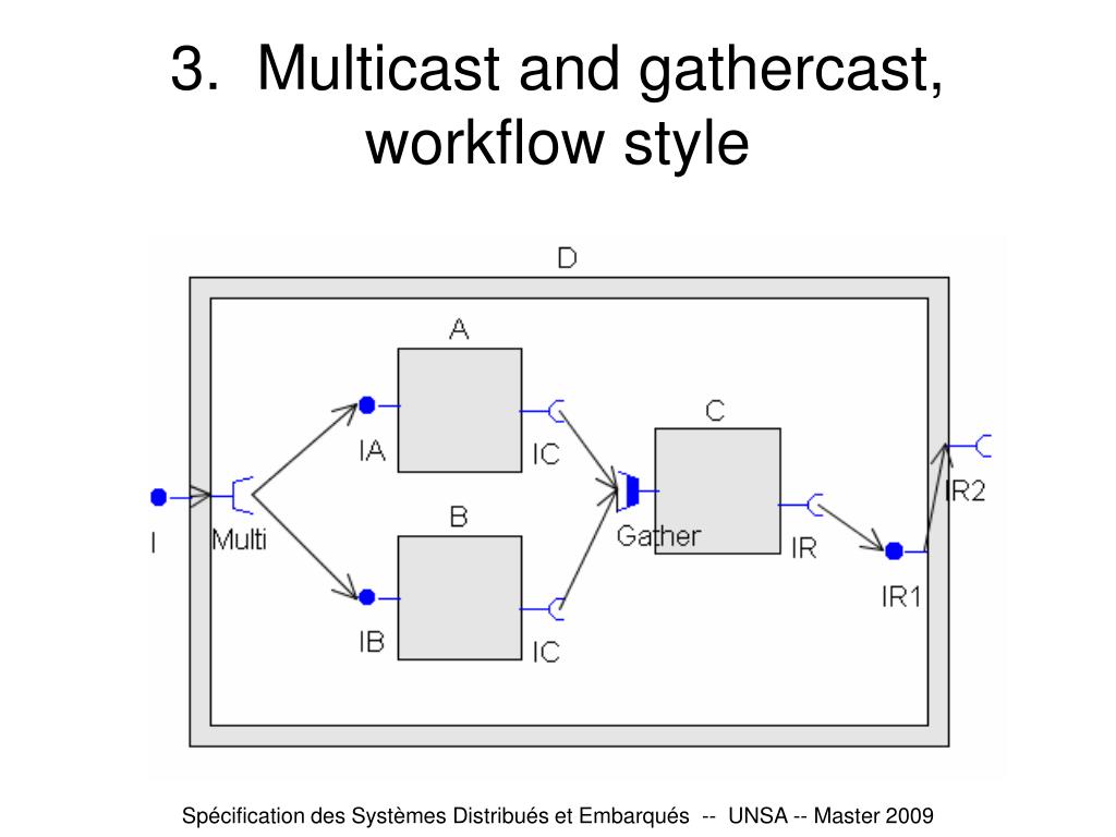 3. Multicast and gathercast, workflow style Spécification des Systèmes Distribués et Embarqués -- UNSA -- Master 2009