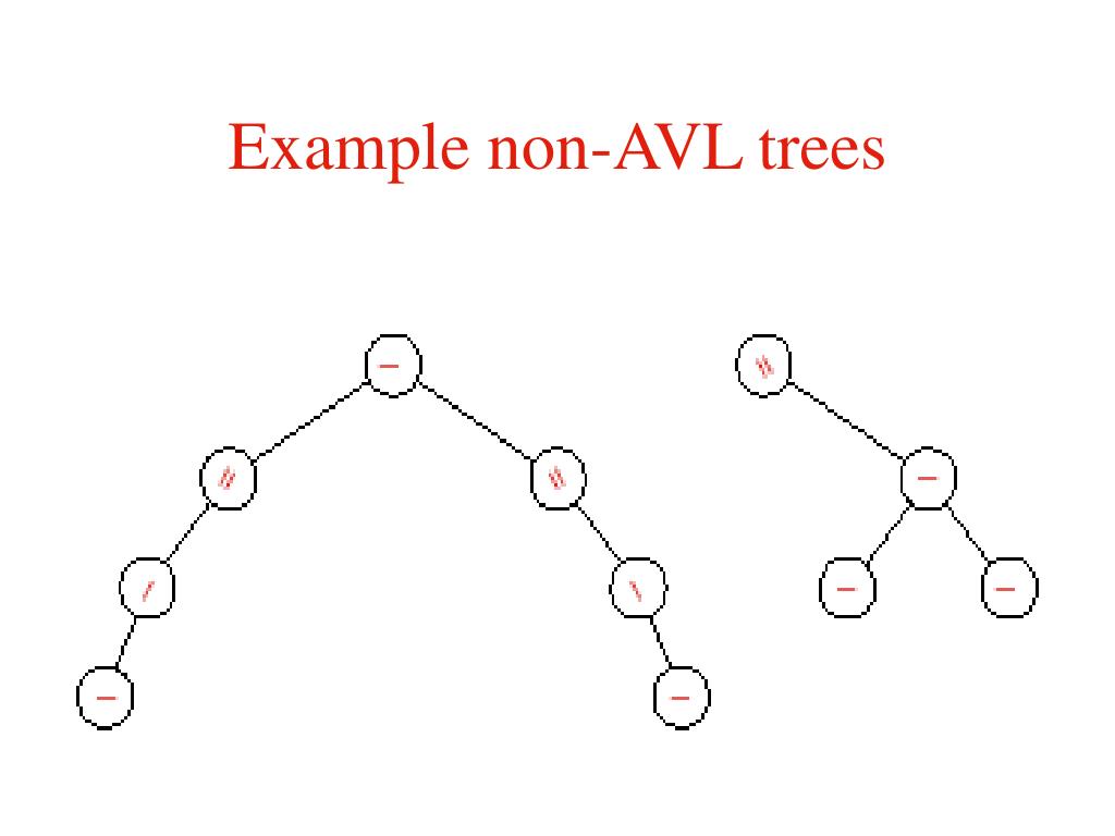 Height Balance: AVL Trees Definition: An AVL treeis a binary search tree in which the heights of the left and right subtrees of the root differ by at most 1 and in which the left and right subtrees are again AVL trees. With each node of an AVL tree is associated a balance factor that is left higher, equal, or right higher according, respectively, as the left subtree has height greater than, equal to, or less than that of the right subtree.