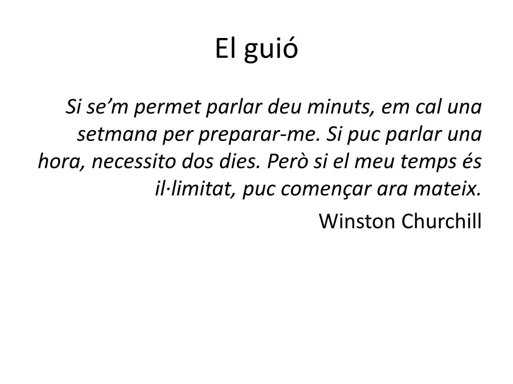 El guió Si se’m permet parlar deu minuts, em cal una setmana per preparar-me. Si puc parlar una hora, necessito dos dies. Però si el meu temps és il·limitat, puc començar ara mateix. Winston Churchill