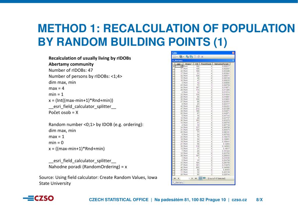 METHOD 1:RECALCULATIONOF POPULATION BYRANDOM BUILDING POINTS (1) Source: Using field calculator: Create Random Values, Iowa State University