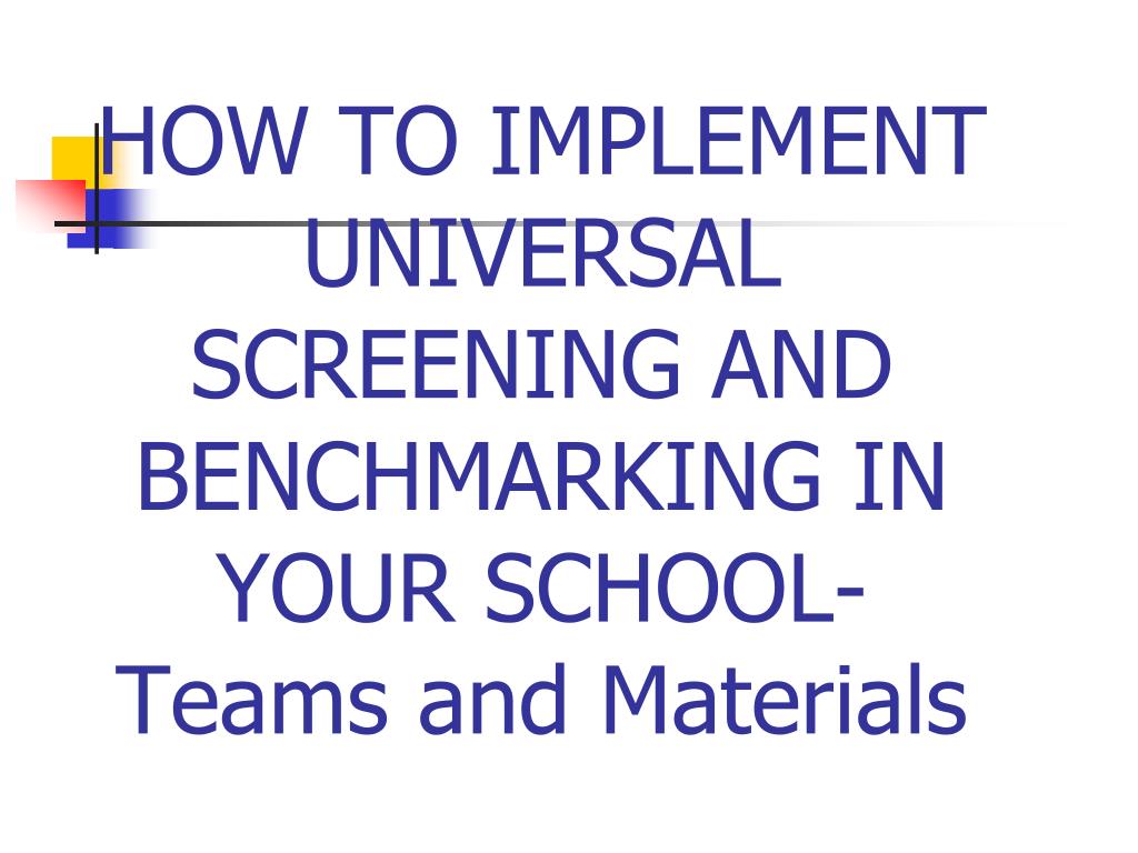 HOW TO IMPLEMENT UNIVERSAL SCREENING AND BENCHMARKING IN YOUR SCHOOL-Teams and Materials