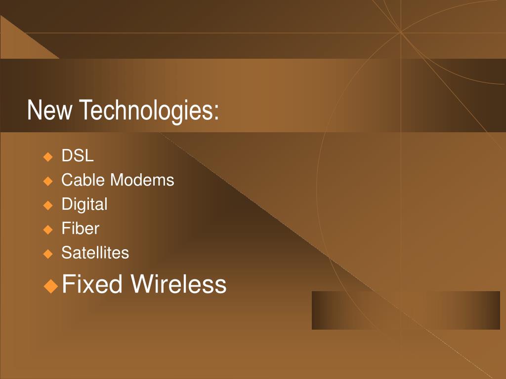 New Technologies: • DSL • Cable Modems • Digital • Fiber • Satellites • Fixed Wireless