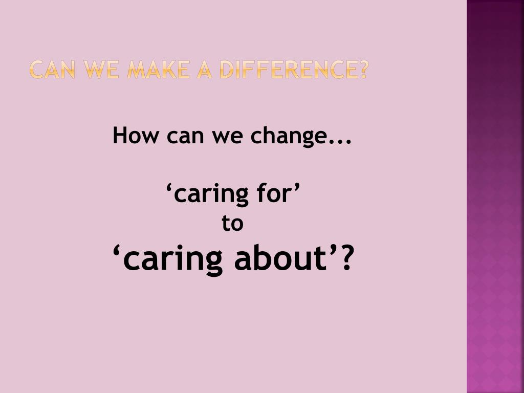 Can we make a difference? How can we change... ‘caring for’ to ‘caring about’?