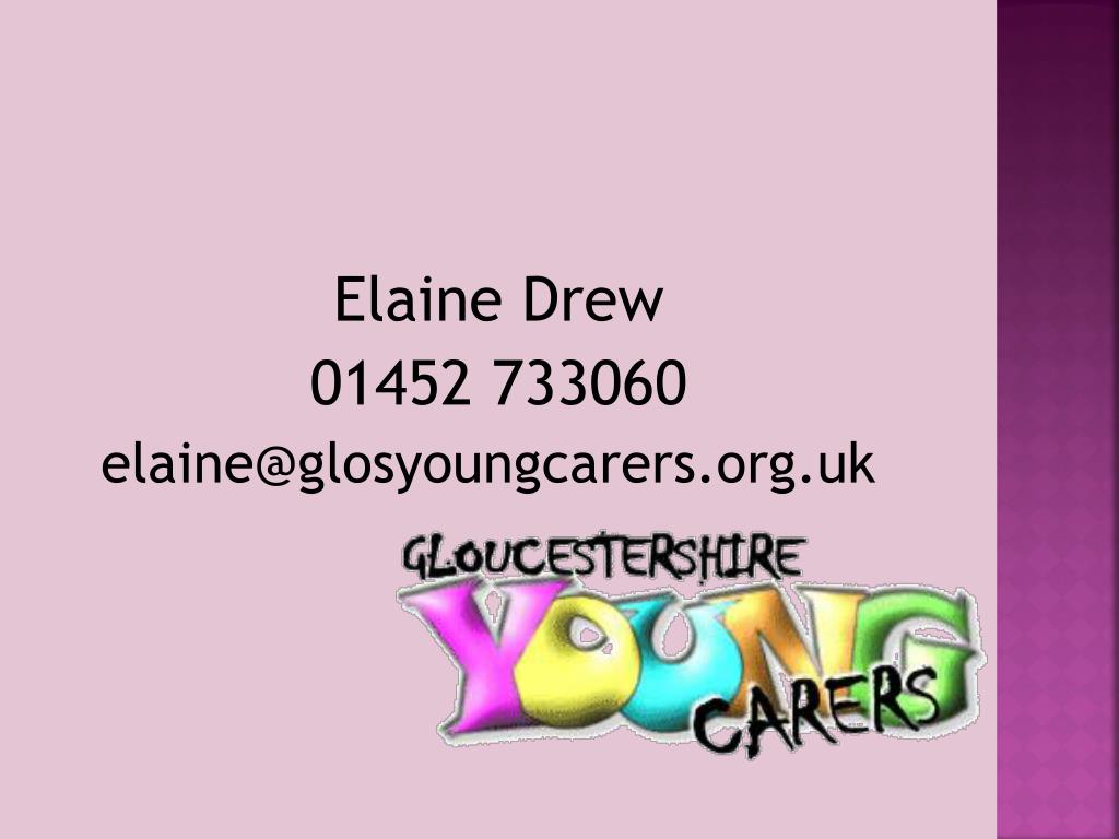 Elaine Drew 01452 733060 elaine@glosyoungcarers.org.uk