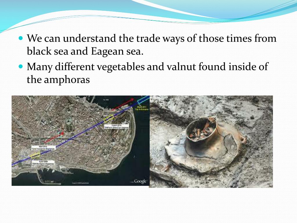 We can understandthetradeways of thosetimesfromblackseaandEageansea. • Manydifferentvegetablesandvalnutfound inside of theamphoras