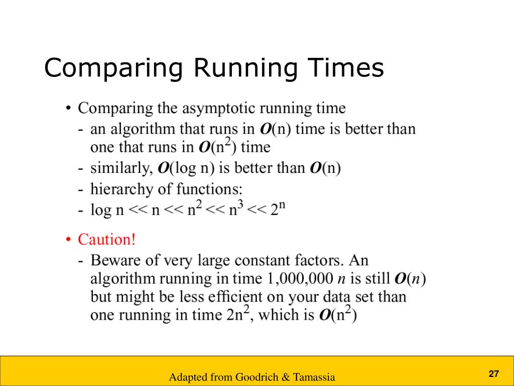 Comparing Running Times Adapted from Goodrich & Tamassia