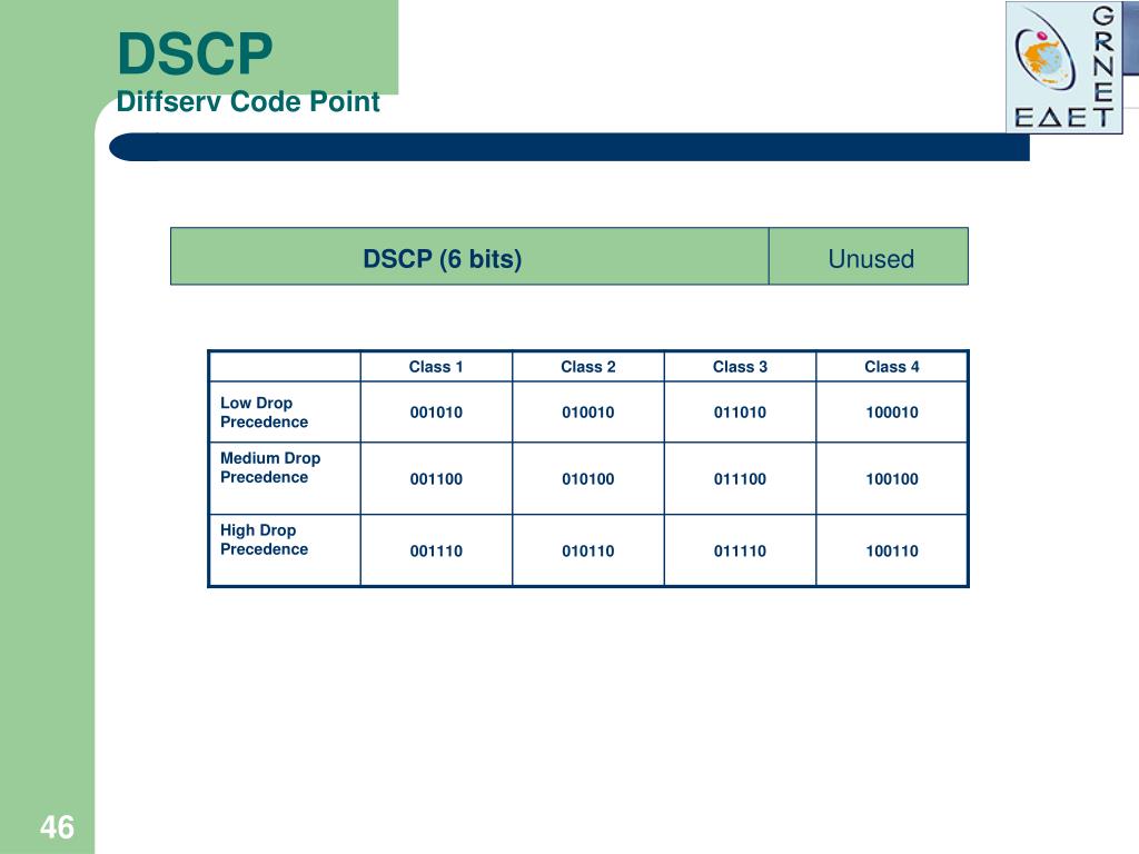 DSCPDiffserv Code Point DSCP (6 bits) Unused