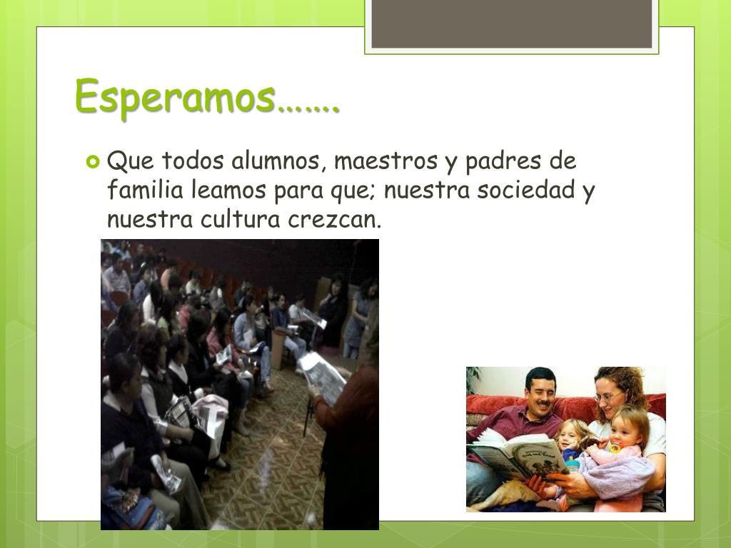 Esperamos……. • Que todos alumnos, maestros y padres de familia leamos para que; nuestra sociedad y nuestra cultura crezcan.